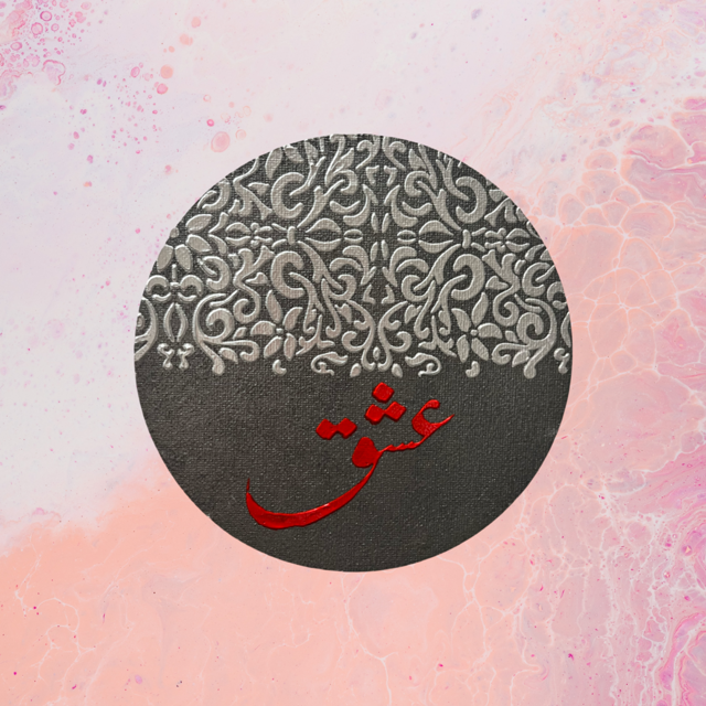 6 inch round canvas magnet. Dark gray. silver and red combination.